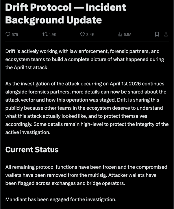 Drift is sharing this publicly because other teams in the ecosystem deserve to understand what this attack actually looked like.