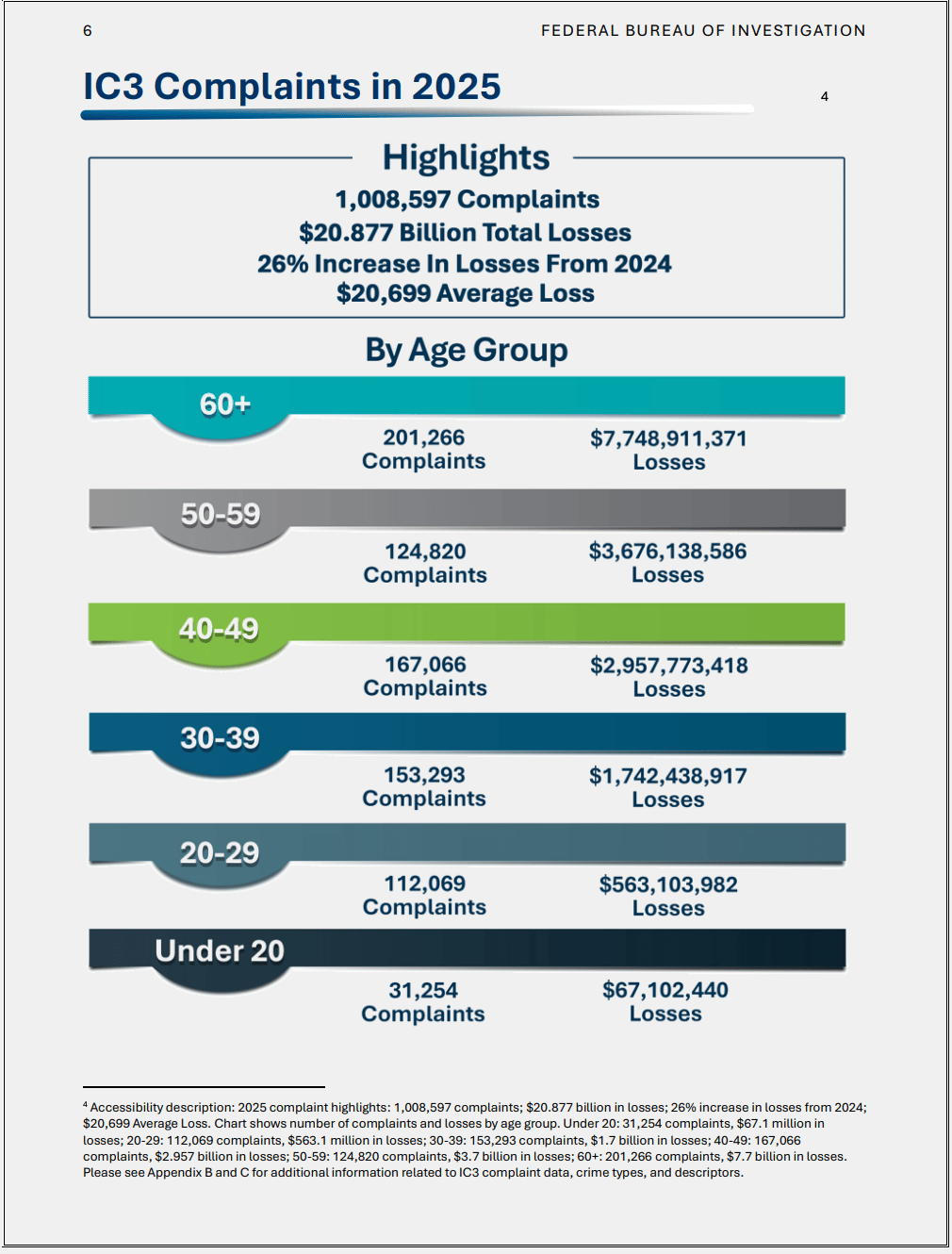 They have a whole section on the elderly because it's just the most prevalent: a 59% jump in amounts lost in 2025 to the elderly.
