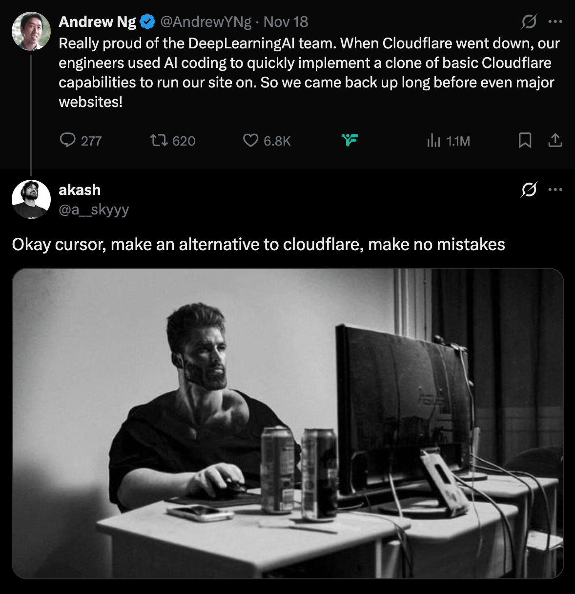 Cloudflare had a rough Monday, taking down a chunk of the internet for about 6 hours due to what they're calling their worst outage since 2019. The culprit was a seemingly innocent database permissions change that caused their Bot Management feature file to balloon with duplicate entries. Their proxy software had a hard limit of 200 features, but the corrupted file exceeded this, causing the whole system to panic and spew 5xx errors across their network.