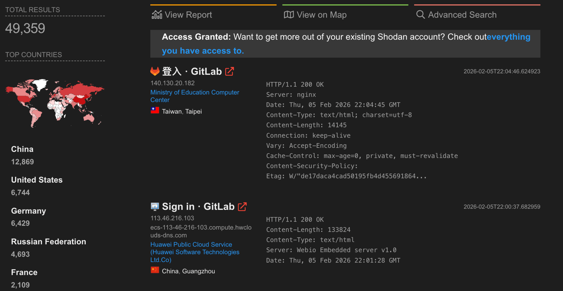 Shodan is tracking over 49,000 GitLab instances still exposed online. Federal agencies now have three weeks to get their act together, but given GitLab's massive footprint (30 million users, half the Fortune 100), this affects way more than just government systems. (read more)
