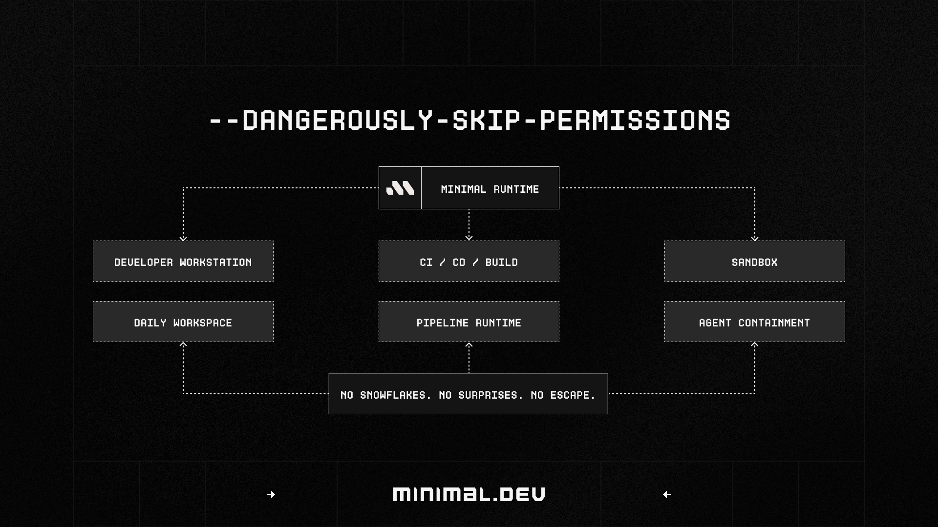 Minimal is more than a sandbox for untrusted code execution, we deliver safe, predictable dev environments that work identically for humans, agents, and CI. Declarative workspaces with full traceability, made simple.