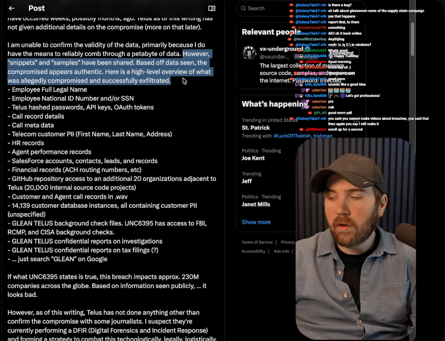So, Shiny Hunters claims to have stolen roughly one petabyte of data from Telus. Petabyte. With a P. That’s a massive amount of data. They’re saying social security or national IDs, hashed passwords, API keys, OAuth tokens, call metadata, customer records, financial and HR data, Salesforce accounts, background check files, and voice recordings of customer support calls. While Telus confirmed a security incident, they have yet to clarify the full extent or validity of the breach claims. The data reportedly also included access to 20,000 GitHub repositories connected to Telus. (read more)
